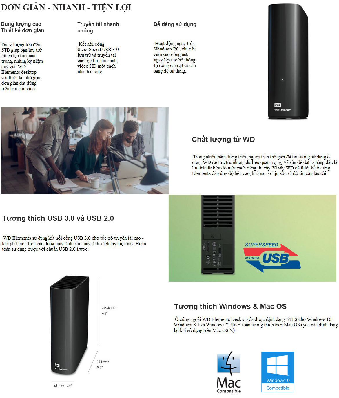 Ổ cứng gắn ngoài ngoài WD Elements usb 3.0 desktop