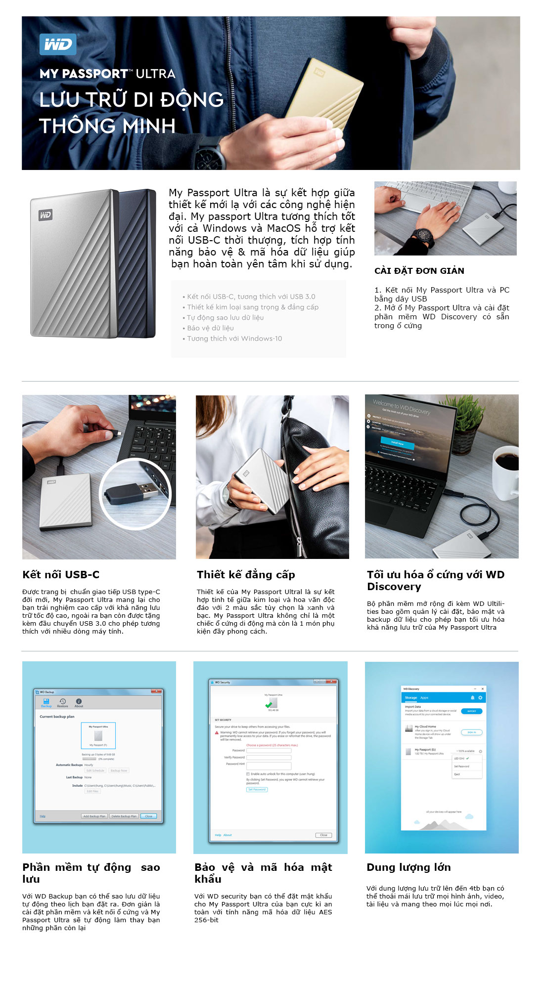 Ổ cứng gắn ngoài WD My Passport Ultra - Blue