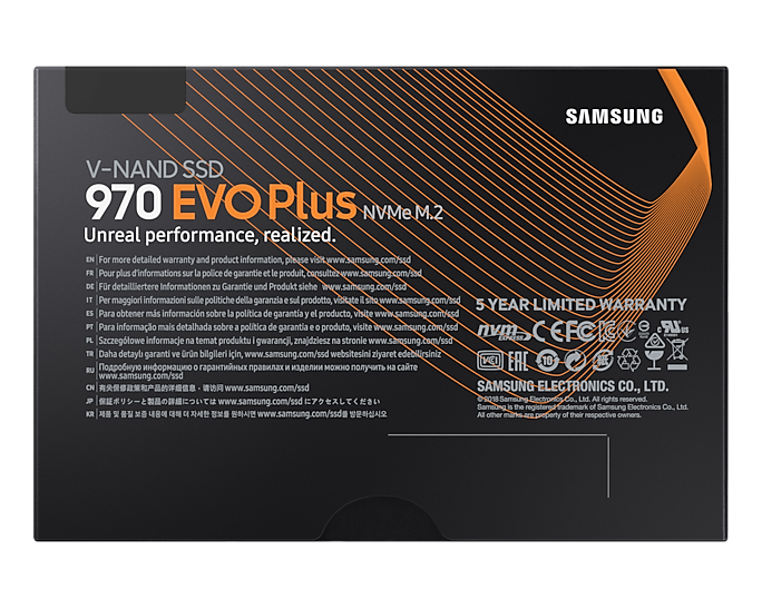 * Chỉ số TBW được bảo hành cho các mẫu 970 EVO Plus: 150 TBW cho phiên bản 250 GB, 300 TBW cho phiên bản 500 GB, 600 TBW cho phiên bản 1TB, 1.200 TBW cho phiên bản 2TB.